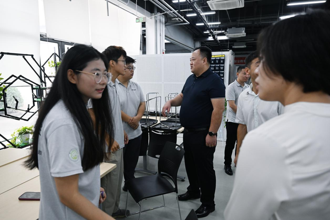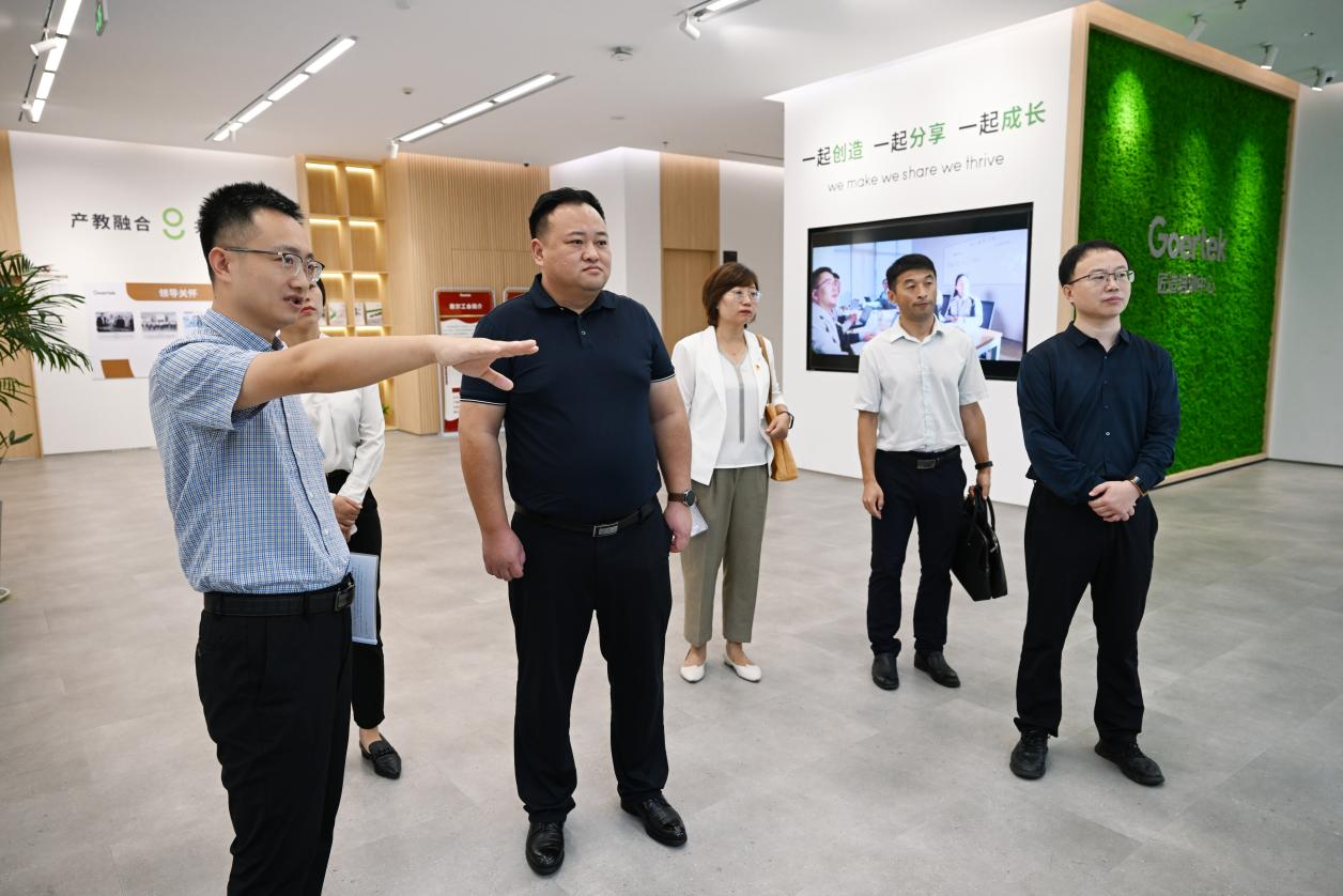 在企業(yè)領(lǐng)導(dǎo)的引導(dǎo)下,常務(wù)副校長劉衛(wèi)東一行參觀了歌爾工學(xué)院展館及教學(xué)做一體化實訓(xùn)室,產(chǎn)教融合總監(jiān)李高峰對歌爾工學(xué)院的成長歷史、發(fā)展?fàn)顩r、匠造人才培養(yǎng)及教學(xué)模式進(jìn)行了詳細(xì)介紹。劉衛(wèi)東常務(wù)副校長對歌爾工學(xué)院產(chǎn)教融合辦學(xué)模式和“三段式”匠造人才培養(yǎng)及教學(xué)模式給予充分肯定。學(xué)校領(lǐng)導(dǎo)還看望了在此生活和學(xué)習(xí)的學(xué)生,聽取了學(xué)生們的學(xué)習(xí)體驗心得,鼓勵他們努力學(xué)習(xí)知識技能,爭取成長為未來產(chǎn)業(yè)匠心人才。