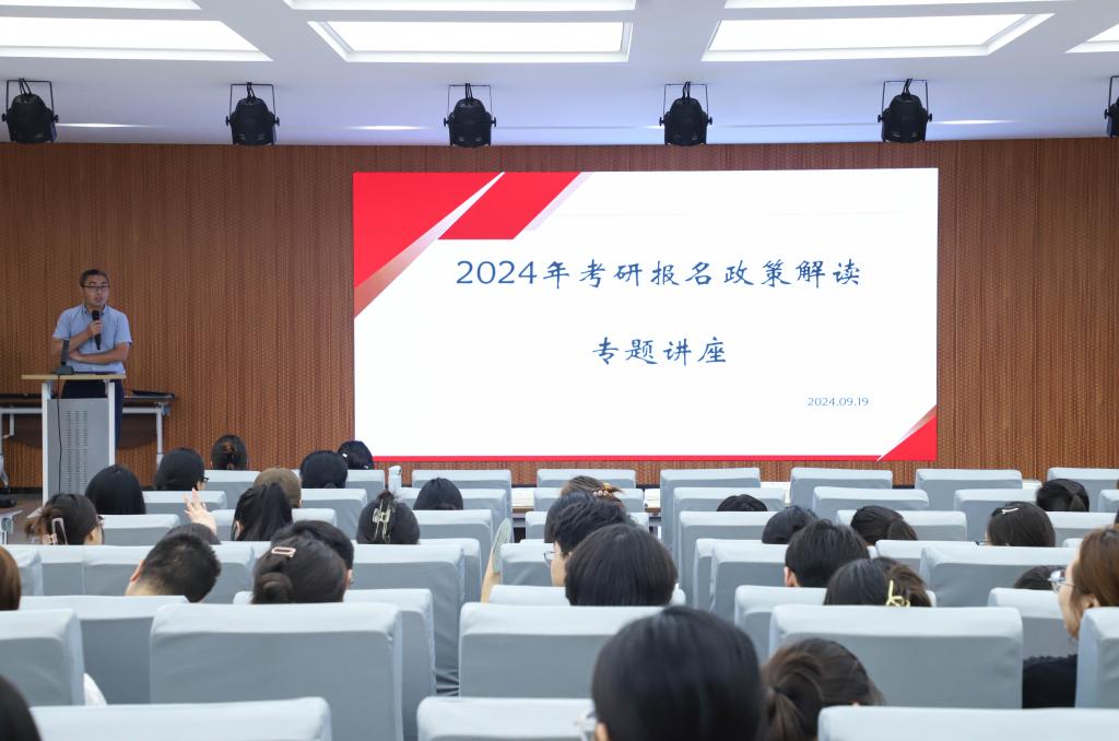 為幫助學生提前了解考研規(guī)劃與升學的基本情況,認清當前考研升學的新形勢,不斷營造全員參與、全方位參與、全過程參與的考研規(guī)劃與升學指導教育的良好氛圍,9月19日,商學院(國際學院)組織各輔導員畢業(yè)班同學于商學院(國際學院)學術報告廳300舉辦考研升學講座活動。