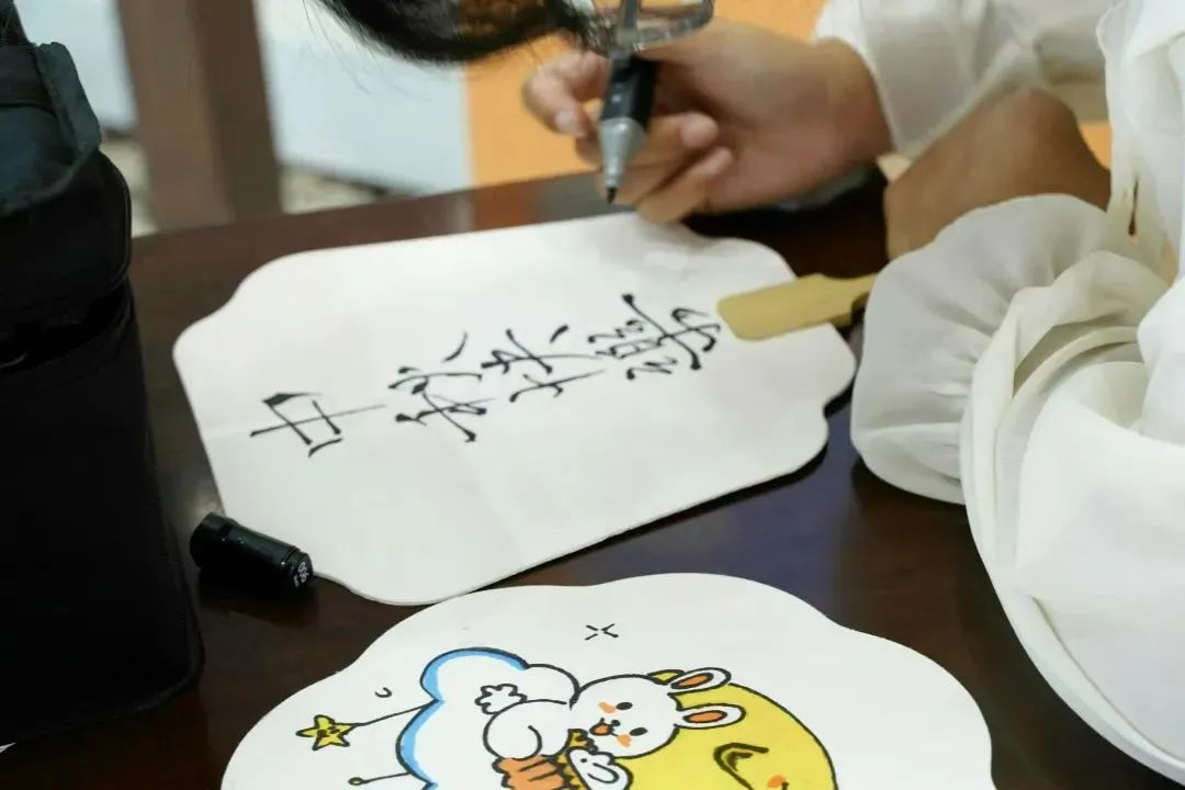一把團扇,一支畫筆,讓參加活動的同學們們開啟了一場妙趣橫生的創(chuàng)作之旅。在時間的流逝中,慢慢摸索到繪制的技巧,全身心沉浸在繪制團扇的樂趣中。一筆筆地仔細描繪,細心渲染,用繽紛色彩點綴扇面,通過大家精心制作,一把把獨具一格、富有寓意的精美團扇就呈現在了大家面前。栩栩如生的玉兔寄予中秋的美好祝福,斑斕豐富的團扇傳達著合歡圓滿的美好祝愿。