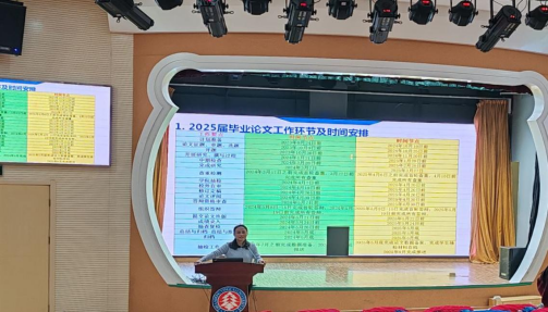 武科長主要從以下四個方面進行了全面系統(tǒng)的培訓:一是政策引領,制度護航。結合教育部和省教育廳出臺有關論文管理工作等系列政策文件,進行了詳細的解讀和剖析;二是流程精細,質量至上。為確保老師們論文指導工作的有效開展,學校特制定了各環(huán)節(jié)通知確保信息暢通、關鍵環(huán)節(jié)把控、全程監(jiān)管等;三是抽檢反饋,持續(xù)改進。結合往年出現(xiàn)的抽檢問題進行反饋,對癥下藥;四是多級聯(lián)動,閉環(huán)管理。結合本科畢業(yè)論文質量管理標準形成環(huán)節(jié)協(xié)同,閉環(huán)保障體系。最后,詳細解讀了2025屆畢業(yè)設計(論文)工作時間安排表和工作要求,為我院全體教師帶來了一場內容詳實的專業(yè)培訓。