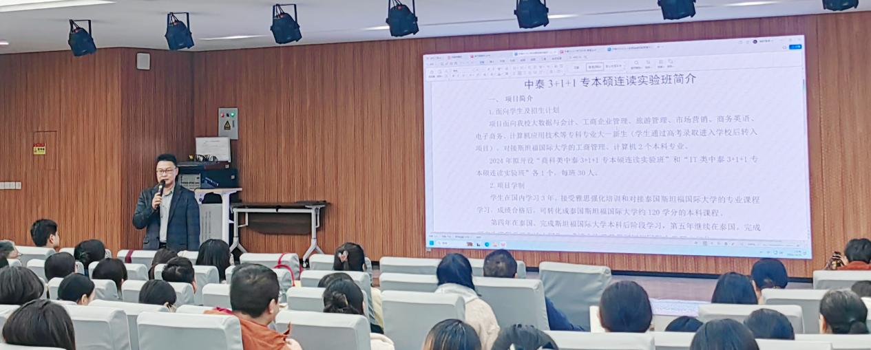 幾位老師的匯報后,趙坤院長詳細介紹了山東英才學(xué)院與泰國斯坦福國際大學(xué)的合作項目。他提到,兩校在專升本和碩博項目等方面已經(jīng)建立了緊密的合作關(guān)系,能夠為學(xué)生提供更多升學(xué)機會和優(yōu)質(zhì)教育資源。