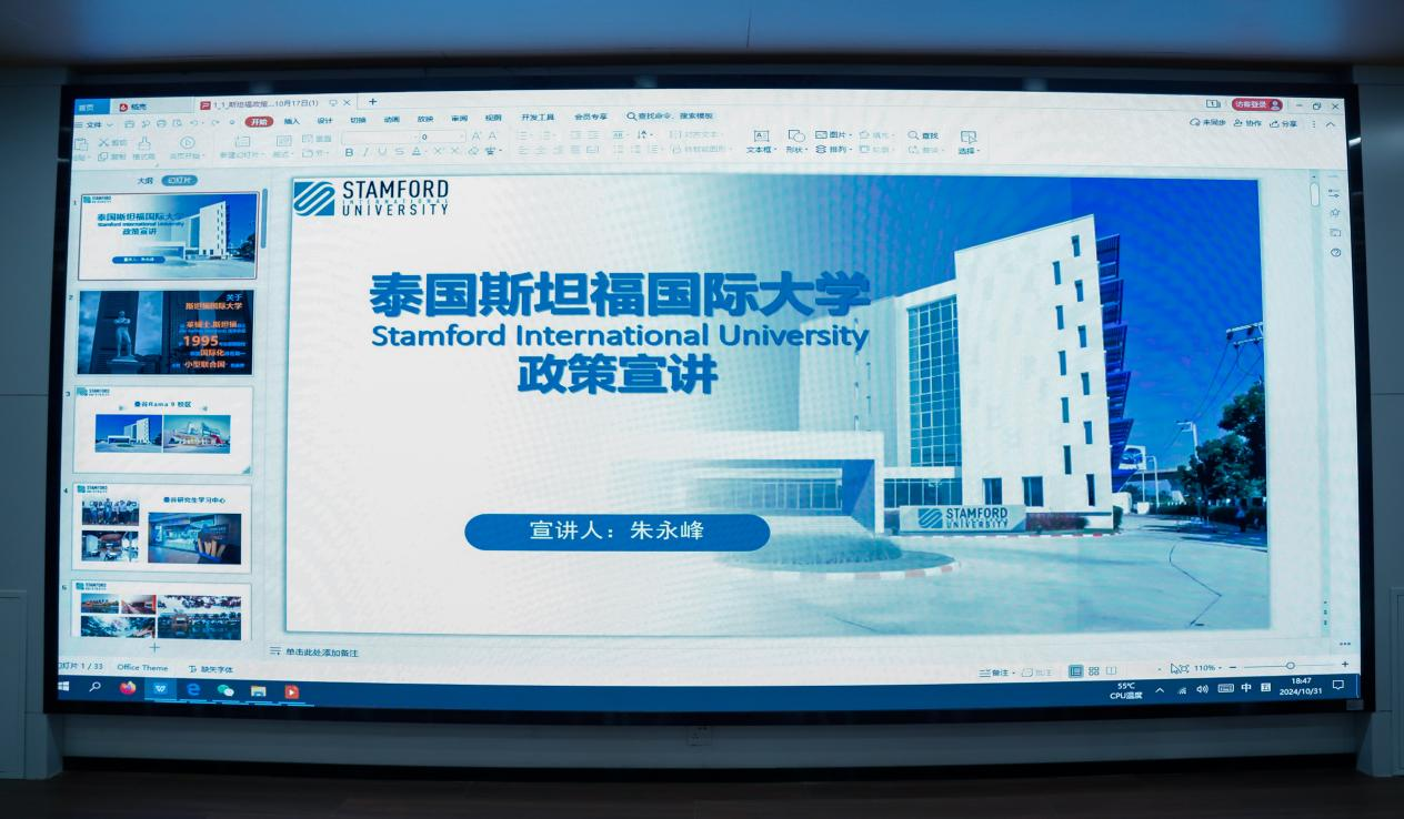 此次宣講會(huì)的成功舉辦,不僅加深了我院學(xué)生對(duì)泰國教育的認(rèn)識(shí),為有志于赴泰國深造的學(xué)生提供一個(gè)全面了解泰國教育體系、留學(xué)政策及申請(qǐng)流程的平臺(tái)。下一步,學(xué)院還將繼續(xù)推出泰國斯坦福國際大學(xué)留學(xué)項(xiàng)目宣講活動(dòng),不斷助力學(xué)生拓展國際視野,提升自身國際競爭力,助力他們在全球化的浪潮中乘風(fēng)破浪,實(shí)現(xiàn)自己的夢想。