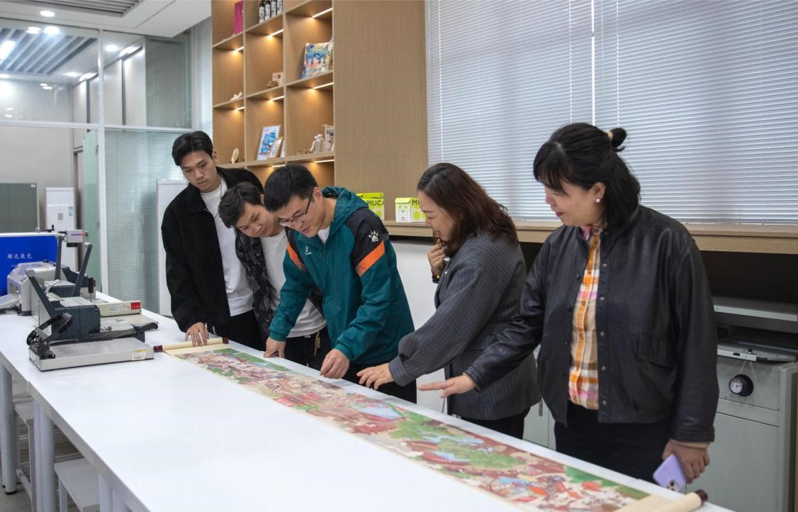 在參觀過程中,教學(xué)院長郝瑩詳細(xì)講解了設(shè)計學(xué)院的辦學(xué)理念、課程設(shè)置、師資力量以及實(shí)踐教學(xué)等方面的情況。溫州博景文化有限公司陳云超董事長一行參觀了設(shè)計綜合實(shí)驗(yàn)教學(xué)實(shí)訓(xùn)中心、專業(yè)成果展示空間等場所,對學(xué)院的教學(xué)設(shè)施和環(huán)境表示高度贊賞。雙方還就如何加強(qiáng)實(shí)踐教學(xué)、提升學(xué)生創(chuàng)新能力等方面進(jìn)行了深入探討。陳董事長表示,愿意為設(shè)計學(xué)院的學(xué)生提供實(shí)踐機(jī)會和實(shí)習(xí)崗位,幫助他們更好地將理論知識與實(shí)踐相結(jié)合,提升專業(yè)技能和就業(yè)競爭力。