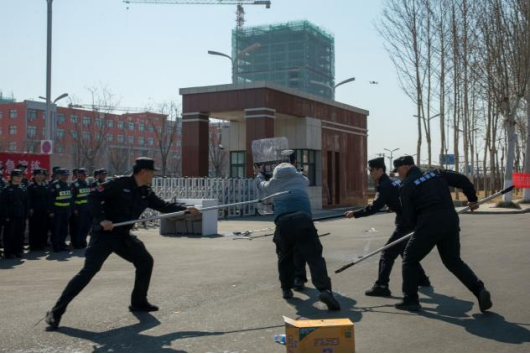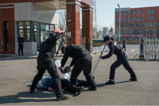 演練共分為四個科目,首先進行的是學校應急救援隊“擒敵拳”展示,熱血青春,鑄練鋼鐵堅強意志;英姿颯爽,展現(xiàn)英才學子風采。第二至第四科目分別為,一對一、一對二和一對三實戰(zhàn)模擬;“歹徒”私闖辦公和教學區(qū)域?qū)崙?zhàn)模擬;“校外醉酒人員”沖撞大門實戰(zhàn)模擬。安保人員通過應急處置模擬場景,演練逼真、緊貼實戰(zhàn),處置果斷、精準高效,充分展現(xiàn)維穩(wěn)處置的震懾力。整場演練指揮有力、組織嚴密,立足險情、貼近實戰(zhàn),充分展示了公安機關與學校師生密切協(xié)同、攜手并進、共保平安校園的專業(yè)素養(yǎng)和精神風貌。