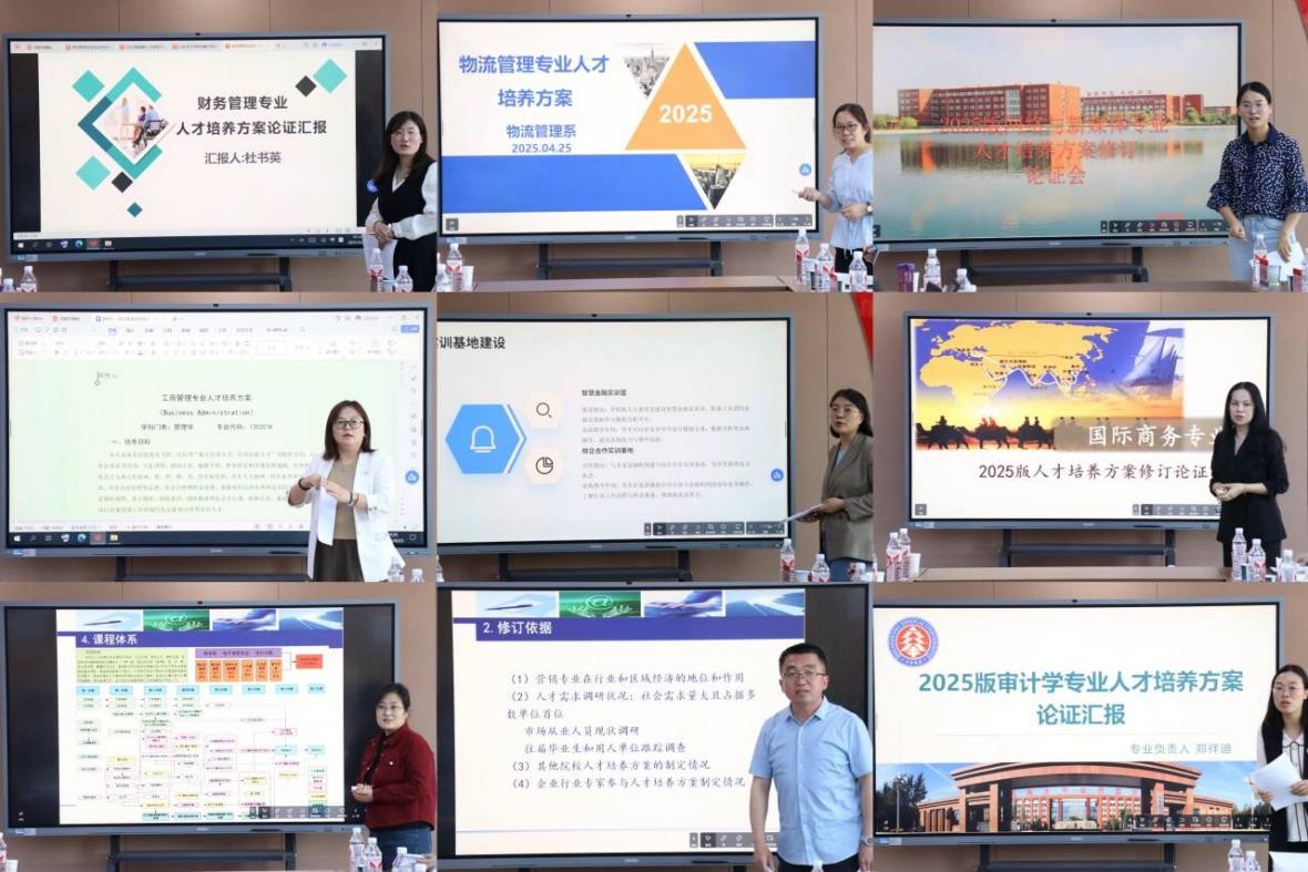 為適應(yīng)新時代商科人才需求,提升學(xué)院專業(yè)建設(shè)水平,確保2025級人才培養(yǎng)方案科學(xué)合理,推動學(xué)院高質(zhì)量發(fā)展。2025年4月25日商學(xué)院(國際學(xué)院)在商學(xué)院樓408成功舉辦2025版本科人才培養(yǎng)方案論證會。論證會邀請山東建筑大學(xué)商學(xué)院院長王靜教授,山東交通學(xué)院陳宇康教授,溫州理工學(xué)院余登升教授,山東管理學(xué)院鞠永強副教授,山東管理學(xué)院常杰副教授,山東女子學(xué)院苗海燕副教授,中匯會計師事務(wù)所(特殊普通合伙)濟南分所合伙人郭景鑫,濟南雙好投資有限公司經(jīng)理蔡裕峰,網(wǎng)城山東文化傳媒有限公司經(jīng)理楊海東等校外高校及企業(yè)專家參加論證會,商學(xué)院(國際學(xué)院)院長趙坤、商學(xué)院(國際學(xué)院)副院長殷永生、教務(wù)處王爽老師、各專業(yè)負責人等出席論證會。