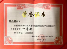 學(xué)院宣傳團(tuán)隊(duì)和付如鍵個(gè)人先后獲得了山東英才學(xué)院短視頻大賽一等獎(jiǎng)、山東英才學(xué)院文創(chuàng)產(chǎn)品設(shè)計(jì)大賽一等獎(jiǎng)等,還幫助設(shè)計(jì)學(xué)院獲得了2022年山東英才學(xué)院宣傳工作先進(jìn)單位,并且多篇學(xué)校宣傳文章在校外平臺(tái)和校內(nèi)平臺(tái)傳播。
