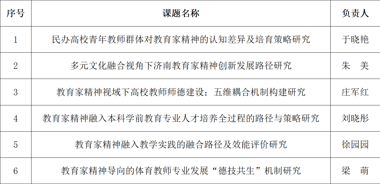 近日,濟(jì)南市社會科學(xué)界聯(lián)合會與濟(jì)南市教育局聯(lián)合公布了2025年度濟(jì)南市人文社會科學(xué)教育家精神研究專項課題立項名單,我校共有6項課題成功獲批,這一成績充分彰顯了學(xué)校在人文社會科學(xué)教育家精神研究領(lǐng)域的卓越實(shí)力,體現(xiàn)了學(xué)校在科研工作尤其是教育家精神傳承與創(chuàng)新方面的顯著成效。