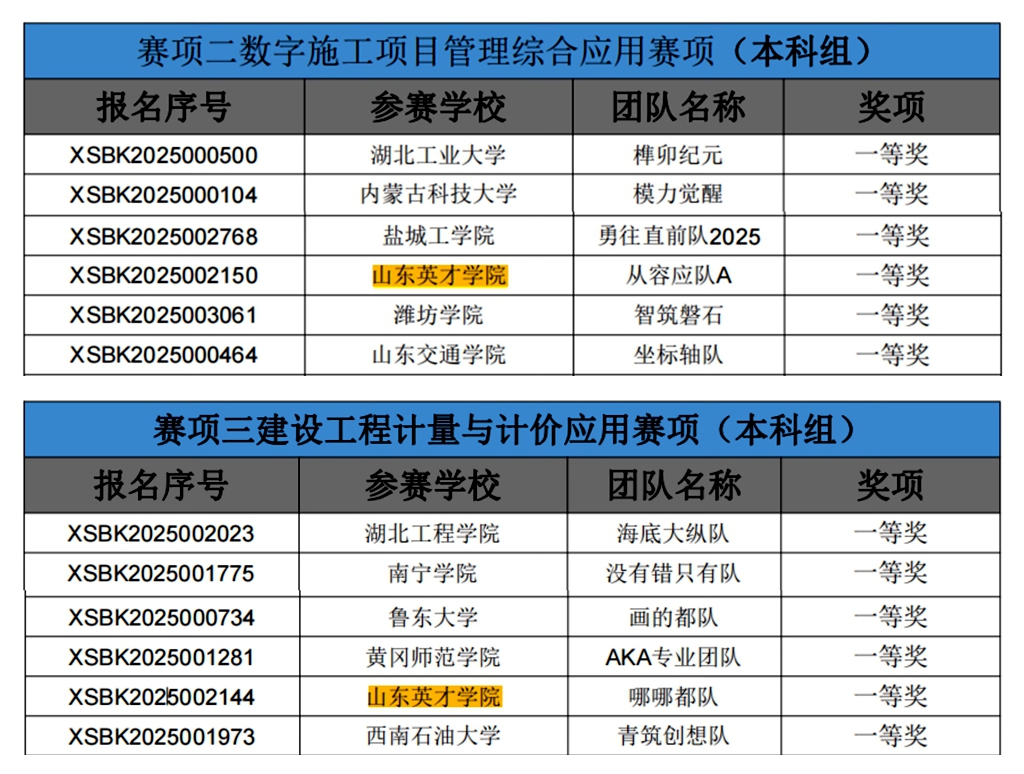 近日,在2025年全國數(shù)字建筑創(chuàng)新應(yīng)用大賽選拔賽中,我校工學(xué)院楊紅霞、李雪、張秀娟師生團隊表現(xiàn)優(yōu)異,在“數(shù)字施工項目管理綜合應(yīng)用”與“建設(shè)工程計量與計價應(yīng)用”兩個賽項中雙雙斬獲國家一等獎,成功晉級全國總決賽。