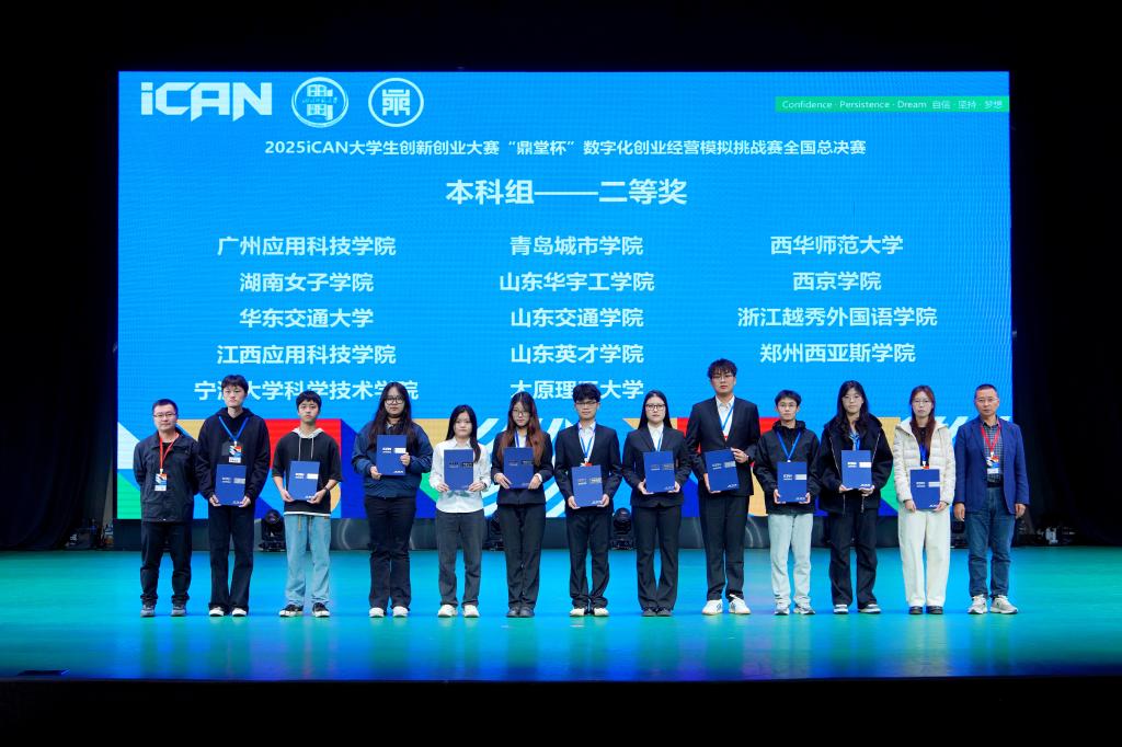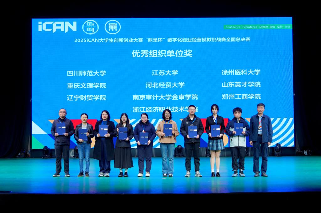 2025年11月8日至9日,iCAN大學(xué)生創(chuàng)新創(chuàng)業(yè)大賽“鼎堂杯”數(shù)字化創(chuàng)業(yè)經(jīng)營(yíng)模擬挑戰(zhàn)賽全國(guó)總決賽在四川師范大學(xué)成龍校區(qū)順利舉行。由我校商學(xué)院(國(guó)際學(xué)院)王素玲老師指導(dǎo),電子商務(wù)專業(yè)2201班張淯淞、李志陽(yáng)、王佳珞三名同學(xué)組成的“好配的一隊(duì)”團(tuán)結(jié)協(xié)作、表現(xiàn)出色,最終榮獲全國(guó)二等獎(jiǎng)。同時(shí),學(xué)校因組織工作突出,獲評(píng)“優(yōu)秀組織單位獎(jiǎng)”。
