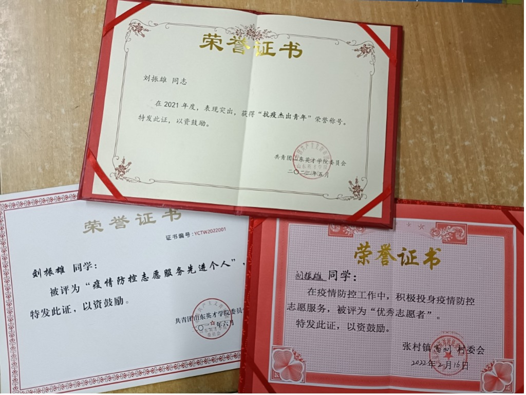 2022年3月,濟(jì)南市原本趨于平穩(wěn)的疫情防控形勢再一次拉響了警報(bào),學(xué)校在第一時間開始了全員核酸檢測工作,劉振雄作為校學(xué)生會執(zhí)行主席擔(dān)當(dāng)起學(xué)校疫情防控核酸志愿者的組織工作,自3月21日至今共計(jì)服務(wù)師生25萬余人次,組織志愿者2507人次,總志愿時長約1.5萬小時,個人志愿時長283小時,被評為山東英才學(xué)院“抗疫杰出青年”,在2022年6月被評為山東英才學(xué)院“疫情防控志愿服務(wù)先進(jìn)個人”。