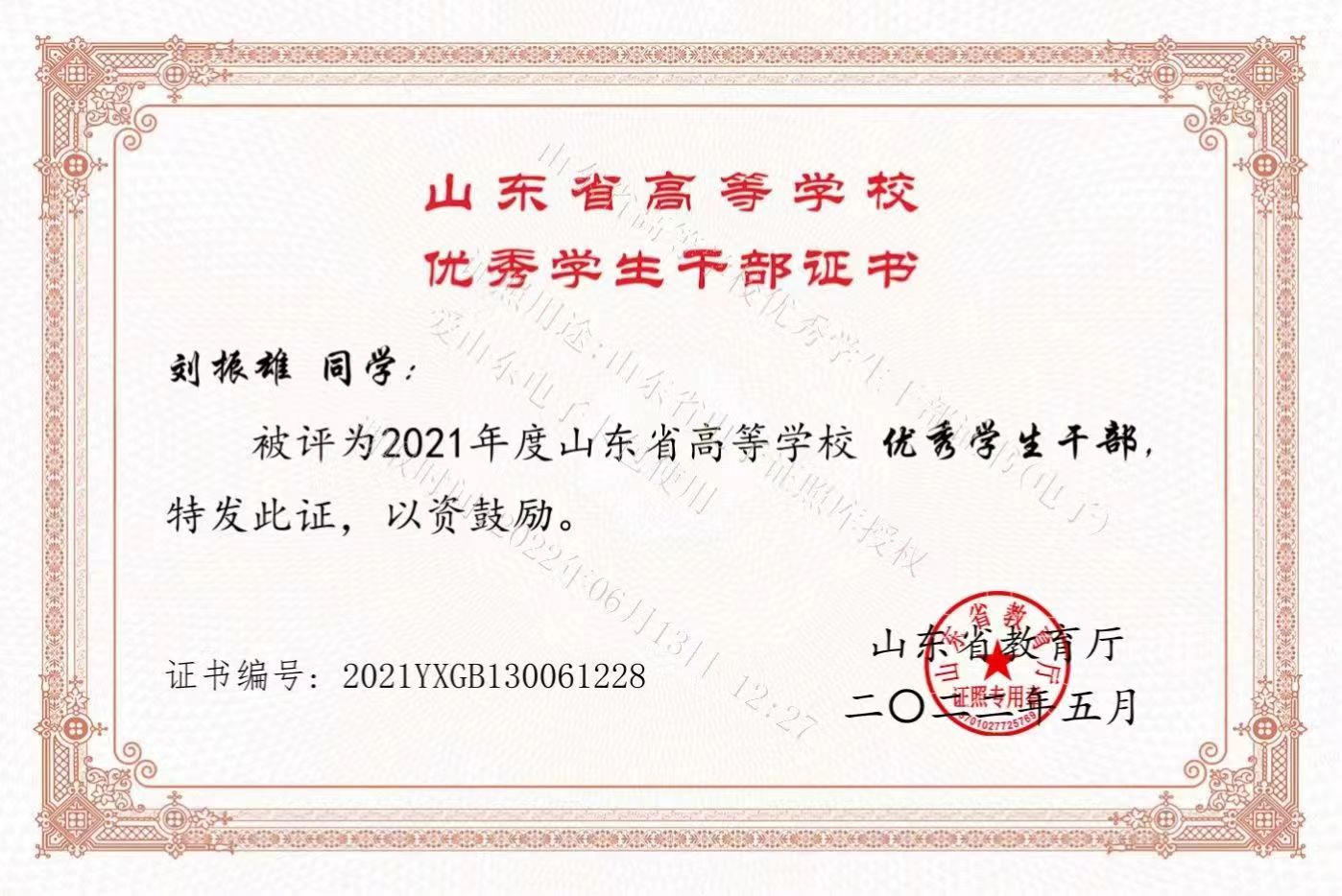 劉振雄努力提高自身思想政治素質(zhì),認(rèn)真學(xué)習(xí)黨的先進(jìn)思想,堅(jiān)持黨的基本路線,擁護(hù)黨的方針政策。入學(xué)以后,他積極參加十九屆六中全會精神討論學(xué)習(xí)活動、慶祝中國共產(chǎn)黨成立100周年習(xí)近平總書記重要講話精神學(xué)習(xí)活動、習(xí)近平總書記在慶祝中國共產(chǎn)主義青年團(tuán)成立100周年大會上的重要講話精神學(xué)習(xí)活動等每一次黨團(tuán)精神學(xué)習(xí)活動,在五四青年節(jié)升旗儀式上帶頭重溫入團(tuán)誓詞。作為山東省青年馬克思主義培養(yǎng)工程大學(xué)生骨干培訓(xùn)班的一員,他時刻牢記和踐行全心全意為同學(xué)服務(wù)的宗旨,熱情用心為同學(xué)服務(wù)。曾被評為山東省“優(yōu)秀學(xué)生干部”,山東英才學(xué)院“先進(jìn)個人”,“優(yōu)秀共青團(tuán)干部”,“優(yōu)秀團(tuán)員”等榮譽(yù)稱號。