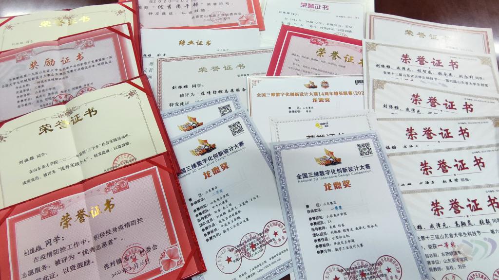 在劉振雄看來,學(xué)生的根本任務(wù)是學(xué)習(xí),在帶領(lǐng)學(xué)生會工作的同時,不忘豐富自己的知識儲備。在學(xué)習(xí)中,他端正學(xué)習(xí)態(tài)度、培養(yǎng)學(xué)習(xí)興趣、科學(xué)掌握學(xué)習(xí)方法,勤思善想,持之以恒,嚴(yán)格要求自我。同時,注重?cái)U(kuò)展知識面,曾帶領(lǐng)團(tuán)隊(duì)參加“全國三維數(shù)字化創(chuàng)新設(shè)計(jì)大賽”獲得一等獎1次、二等獎2次;參加“全國三維數(shù)字化創(chuàng)新設(shè)計(jì)大賽精英聯(lián)賽”獲得特等獎1次、二等獎1次;作為負(fù)責(zé)人組建研究團(tuán)隊(duì),帶領(lǐng)團(tuán)隊(duì)成員不斷探索創(chuàng)新,研發(fā)出“新型農(nóng)藥噴灑裝置”;參加“山東省大學(xué)生創(chuàng)客大賽”獲得一等獎1次、二等獎2次、三等獎2次;參加山東省“挑戰(zhàn)杯”大學(xué)生創(chuàng)業(yè)計(jì)劃競賽獲得三等獎;參加“山東省大學(xué)生機(jī)電產(chǎn)品創(chuàng)新設(shè)計(jì)競賽”獲得三等獎;參加“山東英才學(xué)院大學(xué)生科技創(chuàng)新大賽”獲得二等獎2次;參加工學(xué)院“機(jī)械杯”制圖大賽獲得一等獎。他表示,以后也將在專業(yè)領(lǐng)域深入研究,為國家機(jī)械制造行業(yè)做出積極貢獻(xiàn)。