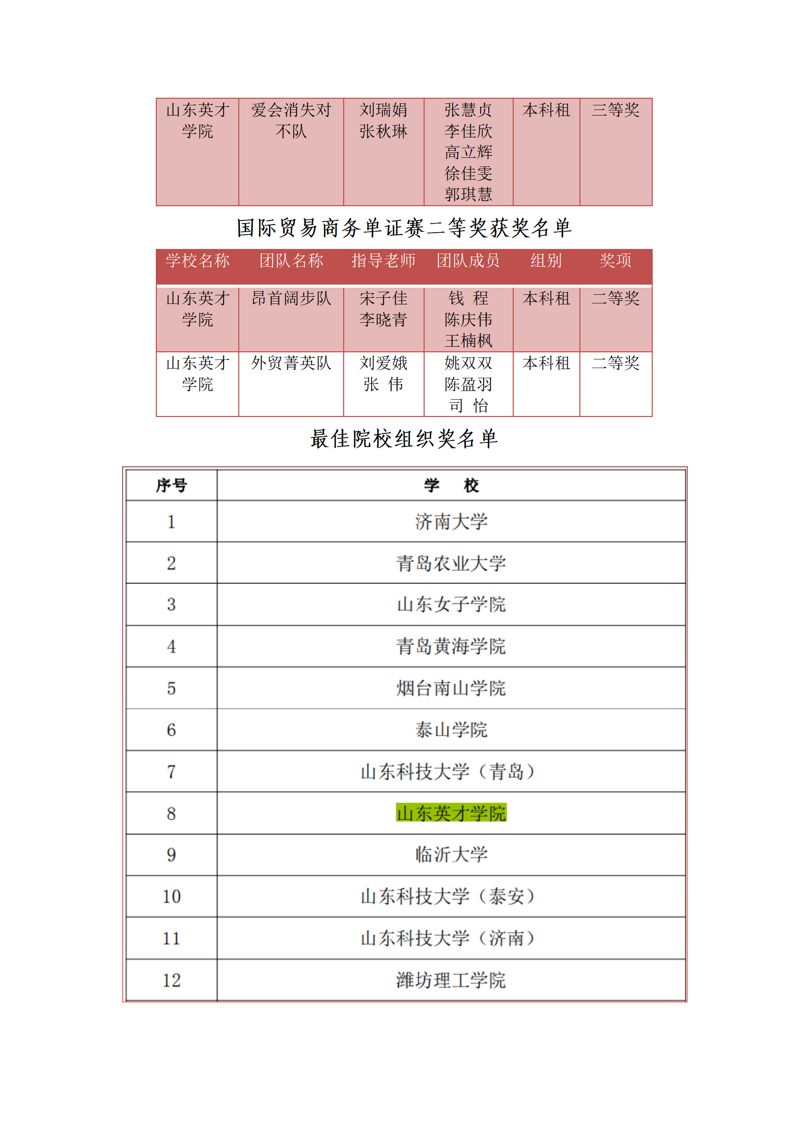 山東英才學(xué)院商學(xué)院(國際學(xué)院)廣泛發(fā)動,扎實備賽,通過初賽-復(fù)賽-決賽三階段比拼,10支參賽隊脫穎而出,喜獲佳績:榮獲省一等獎一項,二等獎6項,三等獎3項。山東英才學(xué)院榮獲最佳院校組織獎。