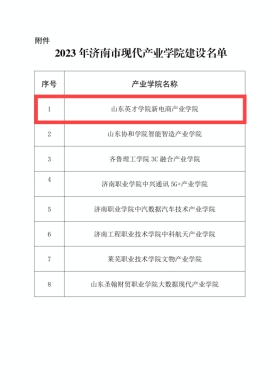 近日,山東省濟(jì)南市教育局公布了2023年濟(jì)南市現(xiàn)代產(chǎn)業(yè)學(xué)院建設(shè)名單。我校商學(xué)院申報(bào)的新電商產(chǎn)業(yè)學(xué)院成功入選,這為我校數(shù)字貿(mào)易專業(yè)集群的建設(shè)與發(fā)展帶來新的機(jī)遇。