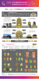 “山東巨野麒麟傳說文化創(chuàng)意設計”這一作品,以山東巨野地區(qū)的麒麟傳說為靈感,巧妙地將傳統(tǒng)文化與現(xiàn)代設計元素相結合,將《西狩獲麟》《麟吐玉書》等麒麟傳說與儒家文化、當?shù)卮斫ㄖ^(qū)域風景等元素符號相結合,通過一定的設計融合,形成具有現(xiàn)代感和設計感的插畫圖形,將其運用到文創(chuàng)產(chǎn)品當中,展現(xiàn)出了獨特的藝術魅力。作品中,麒麟形象栩栩如生,既保留了傳統(tǒng)神話的神秘色彩,又融入了現(xiàn)代審美觀念,讓人眼前一亮。