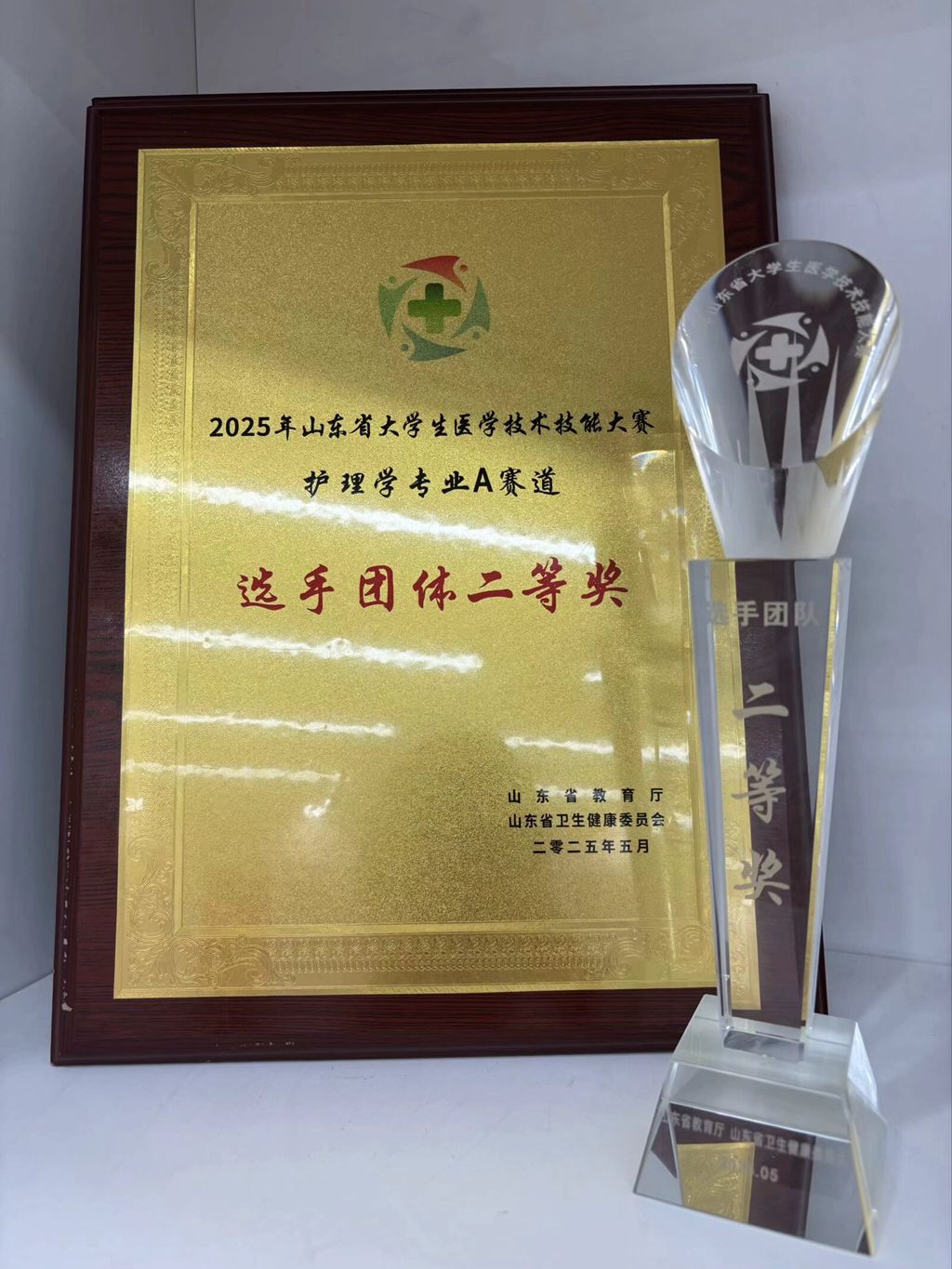 2025年5月11日,在2025年山東省大學生醫(yī)學技術技能大賽的賽場上,醫(yī)學院參賽團隊展現(xiàn)了扎實的醫(yī)學功底、敏捷的應變能力和卓越的團隊精神,最終脫穎而出,斬獲了護理學專業(yè)A賽道團體二等獎。