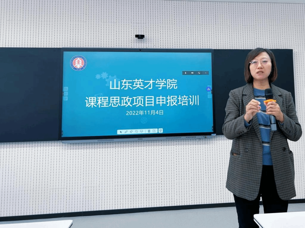 為積極培育和打造課程思政示范課程,提高省級(jí)課程思政示范項(xiàng)目申報(bào)質(zhì)量,凝練高質(zhì)量成果,11月4日,學(xué)校在工學(xué)院3019智慧教室舉辦“山東省課程思政示范項(xiàng)目申報(bào)培訓(xùn)”專題培訓(xùn),會(huì)議邀請(qǐng)超星集團(tuán)教學(xué)設(shè)計(jì)總監(jiān)趙玉霞進(jìn)行專題培訓(xùn),采取線上線下相結(jié)合的形式開展。副校長(zhǎng)兼教務(wù)處處長(zhǎng)孫文紅、項(xiàng)目申報(bào)負(fù)責(zé)人及團(tuán)隊(duì)成員、校級(jí)課程思政示范課負(fù)責(zé)人及教務(wù)處相關(guān)人員等80余人參加培訓(xùn)會(huì),會(huì)議由教務(wù)處副處長(zhǎng)張磊主持。