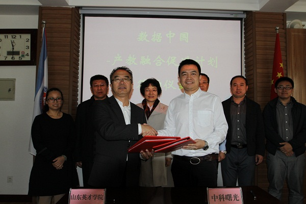 2016年10月13日,我校與曙光信息產(chǎn)業(yè)股份有限公司舉行“教育部——產(chǎn)教融合促進(jìn)計(jì)劃”百校工程簽約儀式,雙方對(duì)在英才學(xué)院共同建設(shè)“曙光大數(shù)據(jù)應(yīng)用創(chuàng)新中心”,簽訂了合作框架協(xié)議、基地共建協(xié)議、專業(yè)建設(shè)及服務(wù)協(xié)議、基地運(yùn)用協(xié)議,并對(duì)雙方合作項(xiàng)目及目標(biāo)進(jìn)行了深入的探討和交流。院長夏季亭、曙光教育合作中心總經(jīng)理李凱、劉翠蘭常務(wù)副院長、梁慶文副院長、崔奎勇副院長、信息工程學(xué)院趙紅艷院長、計(jì)算機(jī)應(yīng)用技術(shù)研究院黃惠芬院長、曙光教育合作中心北方區(qū)裴一山總經(jīng)理、院校合作魏鳴序總監(jiān)、信息工程學(xué)院所有中層領(lǐng)導(dǎo)及骨干教師出席了簽約儀式。