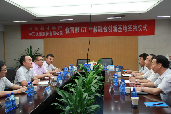 《ICT產(chǎn)教融合創(chuàng)新基地合作協(xié)議》是國(guó)家教育部與中興通訊股份有限公司聯(lián)合簽署,我校是本次合作項(xiàng)目的山東入選的三所院校之一。校企雙方一致認(rèn)為加強(qiáng)校企之間教育、科研資源的合作,共同開展ICT行業(yè)人才培養(yǎng)及ICT行業(yè)應(yīng)用創(chuàng)新,是培養(yǎng)具有較高職業(yè)技能、一定工作創(chuàng)新能力以及國(guó)際競(jìng)爭(zhēng)能力的信息類人才的有效途徑,也是對(duì)以“提高質(zhì)量作為高等教育發(fā)展核心任務(wù)”的《國(guó)家中長(zhǎng)期教育改革和發(fā)展規(guī)劃綱要(2010-2020年)》的切實(shí)響應(yīng)。