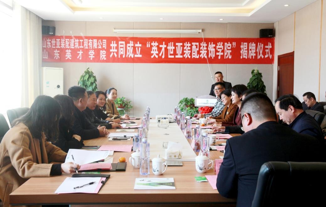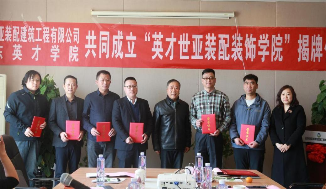 4月7日上午,山東英才學(xué)院與山東世亞裝配建筑工程有限公司(產(chǎn)業(yè)園)聯(lián)合共建“山東英才學(xué)院裝配式建筑產(chǎn)學(xué)研基地”暨“英才世亞裝配裝飾學(xué)院”揭牌儀式在山東世亞裝配建筑工程有限公司(產(chǎn)業(yè)園)科研樓會(huì)議室圓滿(mǎn)舉行。