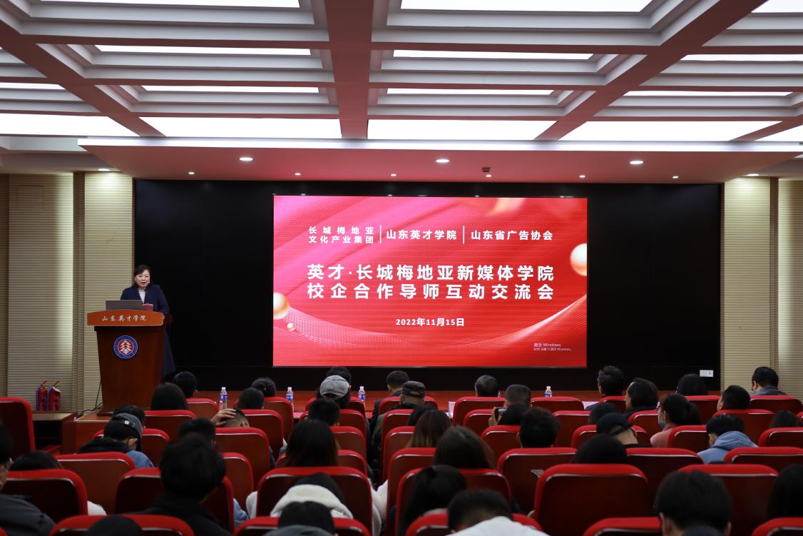 為加強(qiáng)學(xué)校與合作企業(yè)間的溝通和聯(lián)系,進(jìn)一步深化校企合作。11月15日上午,設(shè)計學(xué)院在北校區(qū)學(xué)術(shù)報告廳舉行了“英才·長城梅地亞新媒體學(xué)院校企合作導(dǎo)師互動交流會”,長城梅地亞文化產(chǎn)業(yè)集團(tuán)總經(jīng)理、山東廣告協(xié)會副會長黃剛團(tuán)隊一行,設(shè)計學(xué)院院長周長積、教學(xué)副院長郝瑩,全體教師和2023屆本科畢業(yè)生參加了此次活動,活動由設(shè)計學(xué)院教學(xué)副院長郝瑩主持。